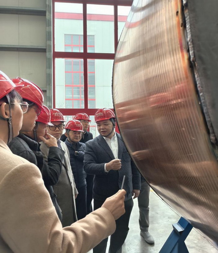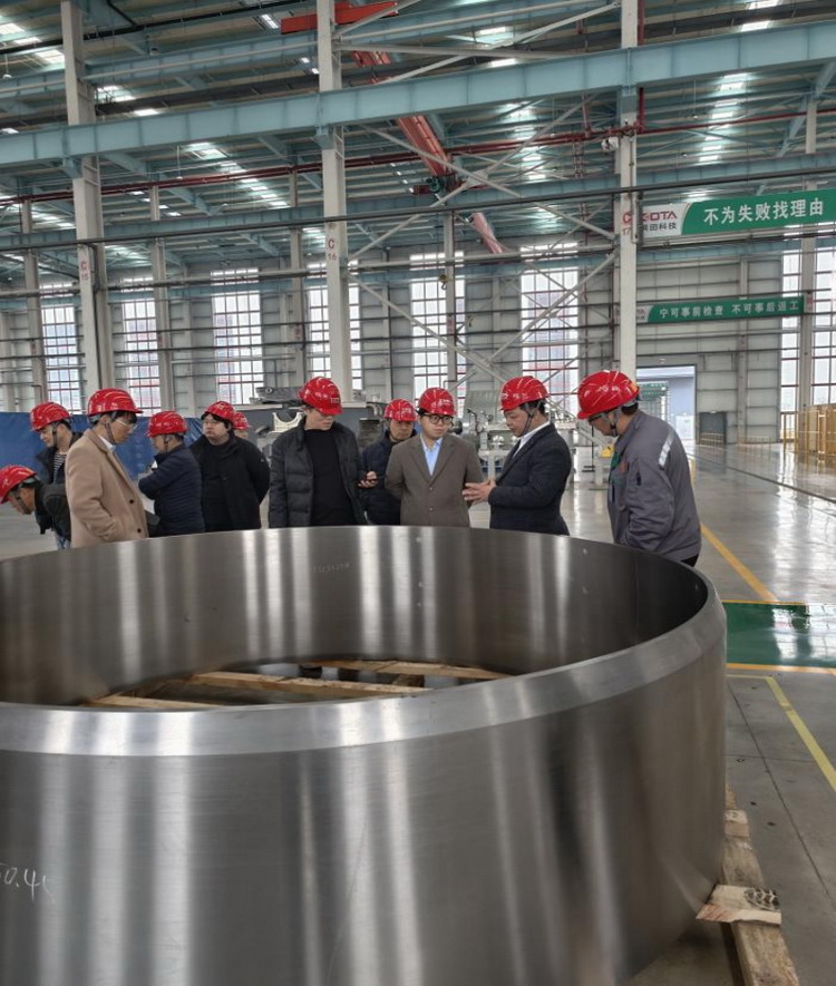 参观期间,松总在大丰生产现场细致介绍了公司的生产管理体系与全流程质量把控标准,销售团队全程陪同,主动为客户答疑解惑。从核心部件精密加工车间到成品组装生产线,客户近距离观摩了电解铜箔阴极辊、生箔机等核心产品的制造流程,对规范化的操作工序、智能化的生产设备及精细化的检测环节有了直观了解。客户与松总及海外销售团队进行了现场交流,对公司严谨的生产管理、完善的品控体系以及高效的履约能力有了直观且深刻的认识,并给予了高度认可。
